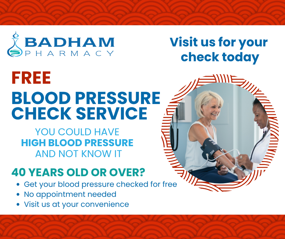 Come and get your blood pressure checked for FREE at Badham Pharmacy.